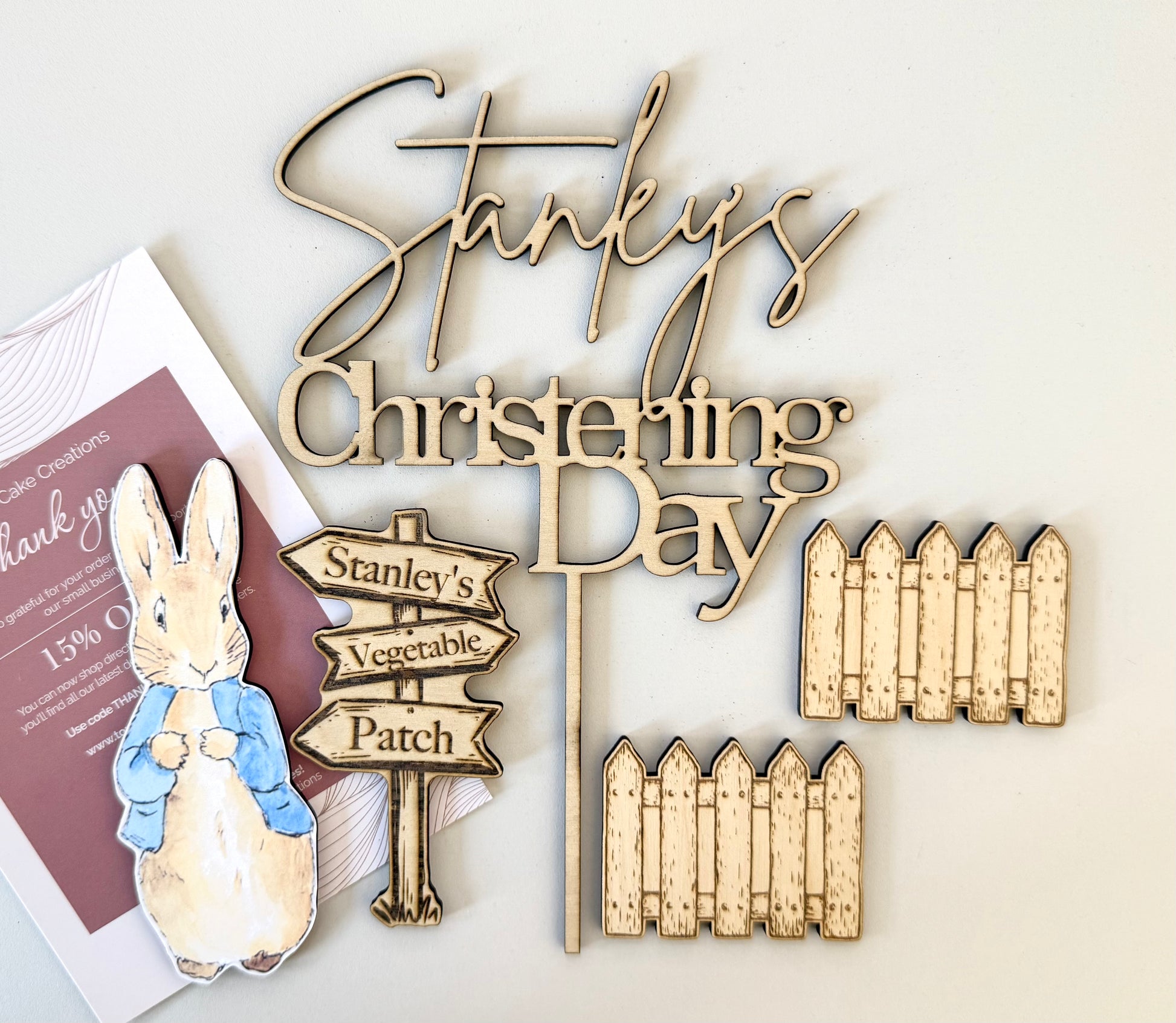 Peter Rabbit Wooden Cake Topper Set